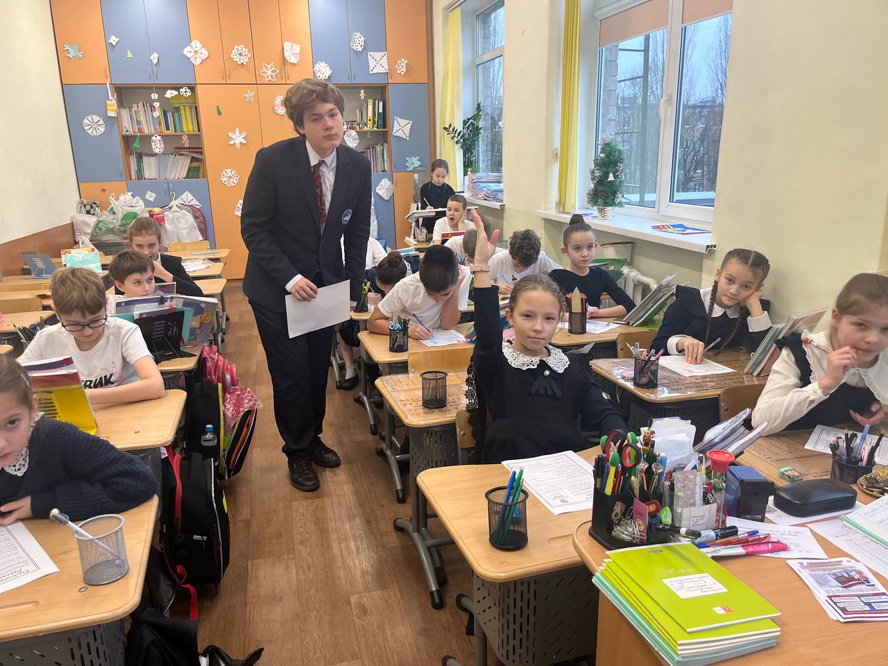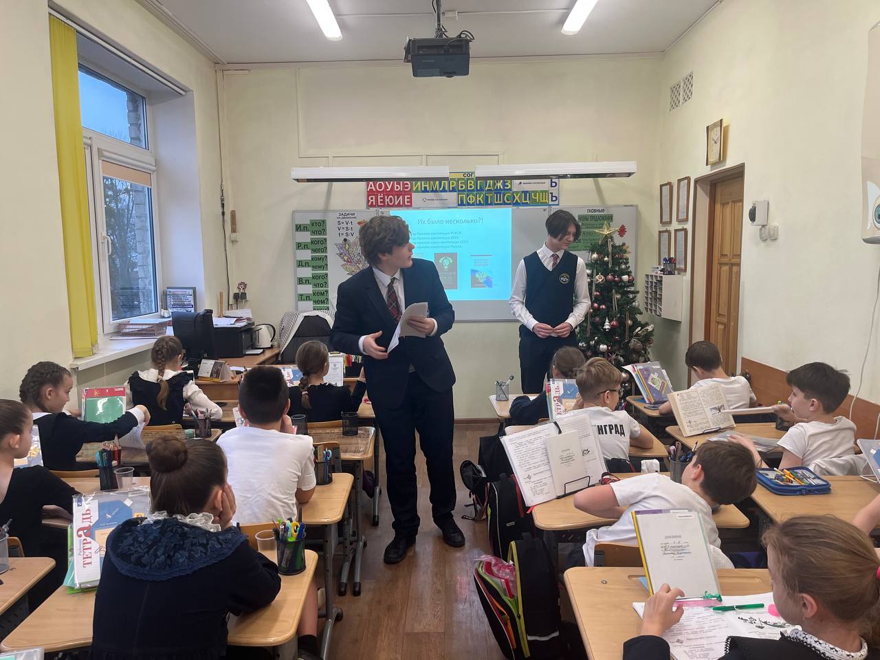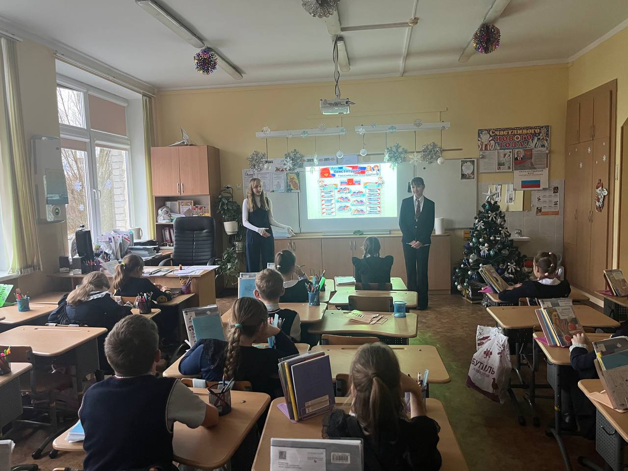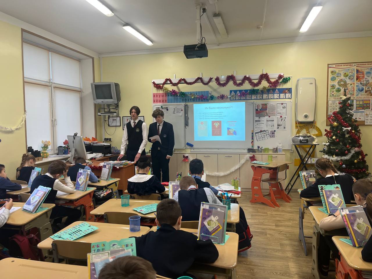 Сегодня, 12 декабря, учащиеся 8Л медиа класса провели мероприятие, посвященное Дню Конституции РФ. Ребята встречали школьников и учителей речевками , подготовили постеры, раздавали памятки, содержащие основную информацию о Конституции нашего Государства. Так же учащиеся 8Л класса провели беседу с презентацией на данную тему для детей 4-ых и 3-их классов.
